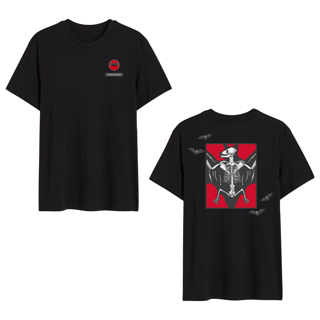 Una playera en color negro con un diseño increíble del icónico murciélago en forma de esqueleto en la espalda com el logo al frente, perfecta para lucirla y hacer match con la temporada. Talla a elegir: CH, M, G o EG.